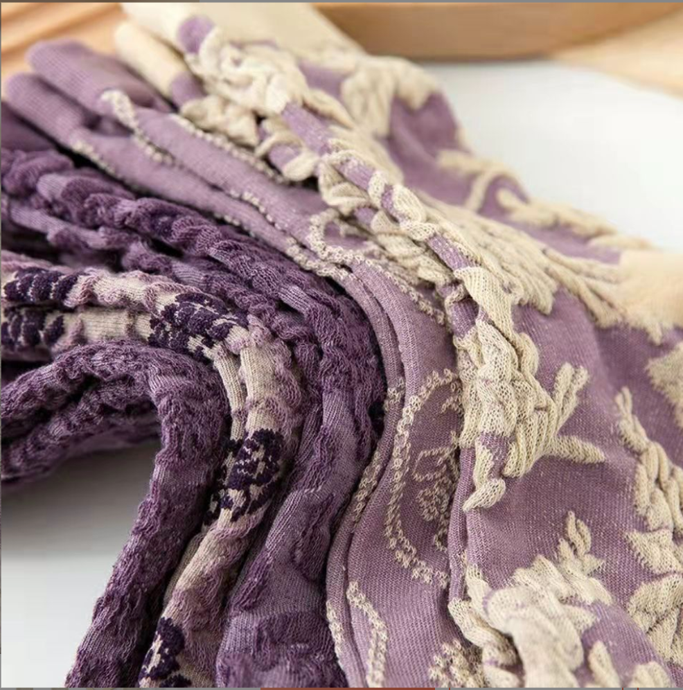 Adorned with delicate baroque-style embroidery, these purple socks blend classic design with modern wearability, adding a touch of refined beauty to your everyday ensemble.