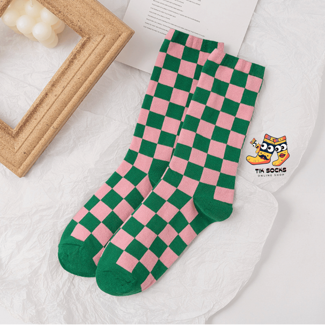 TikSocks|Fun Socks-Chessboard Socks-Green Pink