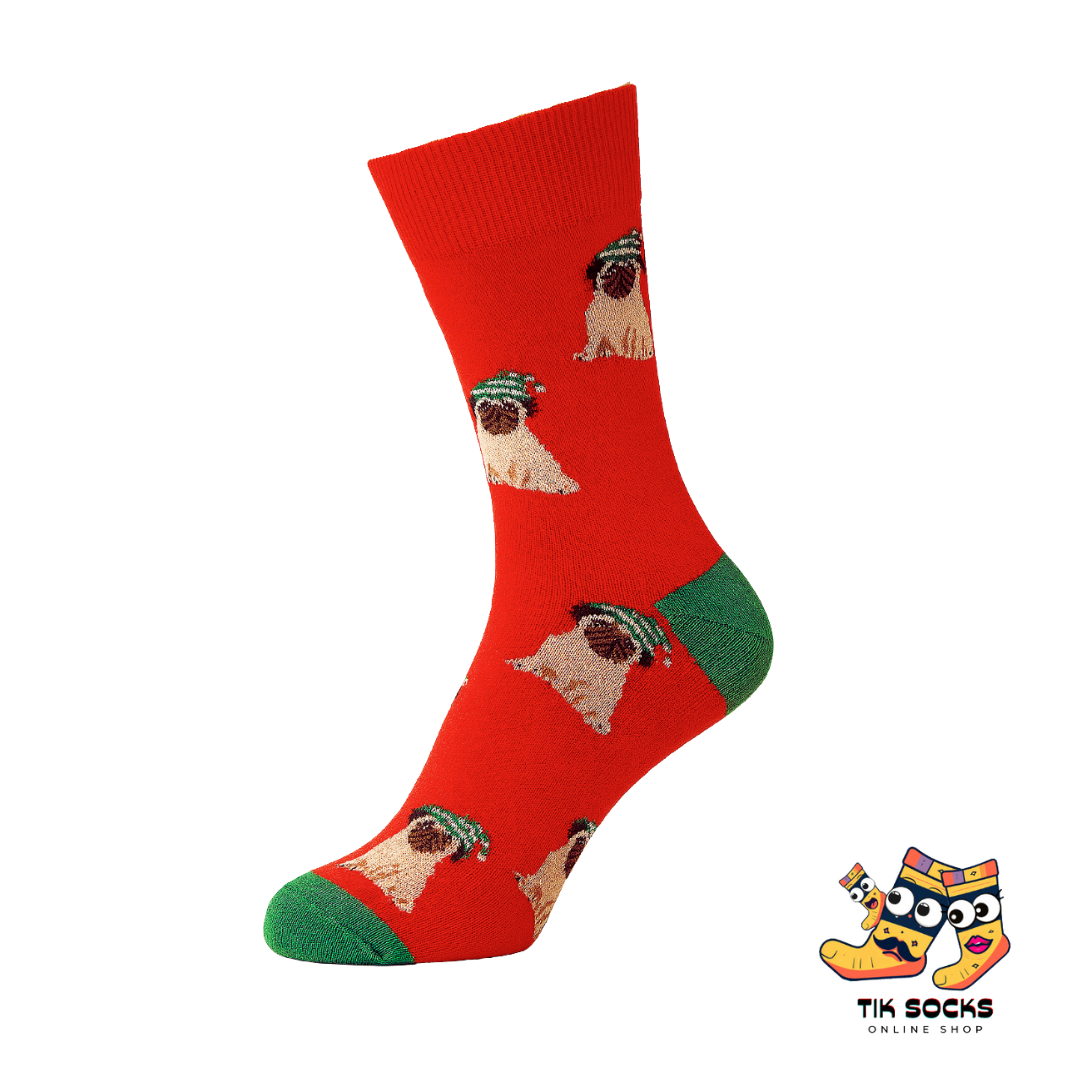 Embrace the warmth and fuzziness of the holiday season with our "Paws and Relax" Holiday Pug Socks. It's 'pug'gingly delightful comfort that will have you and your feet feeling merry and bright!