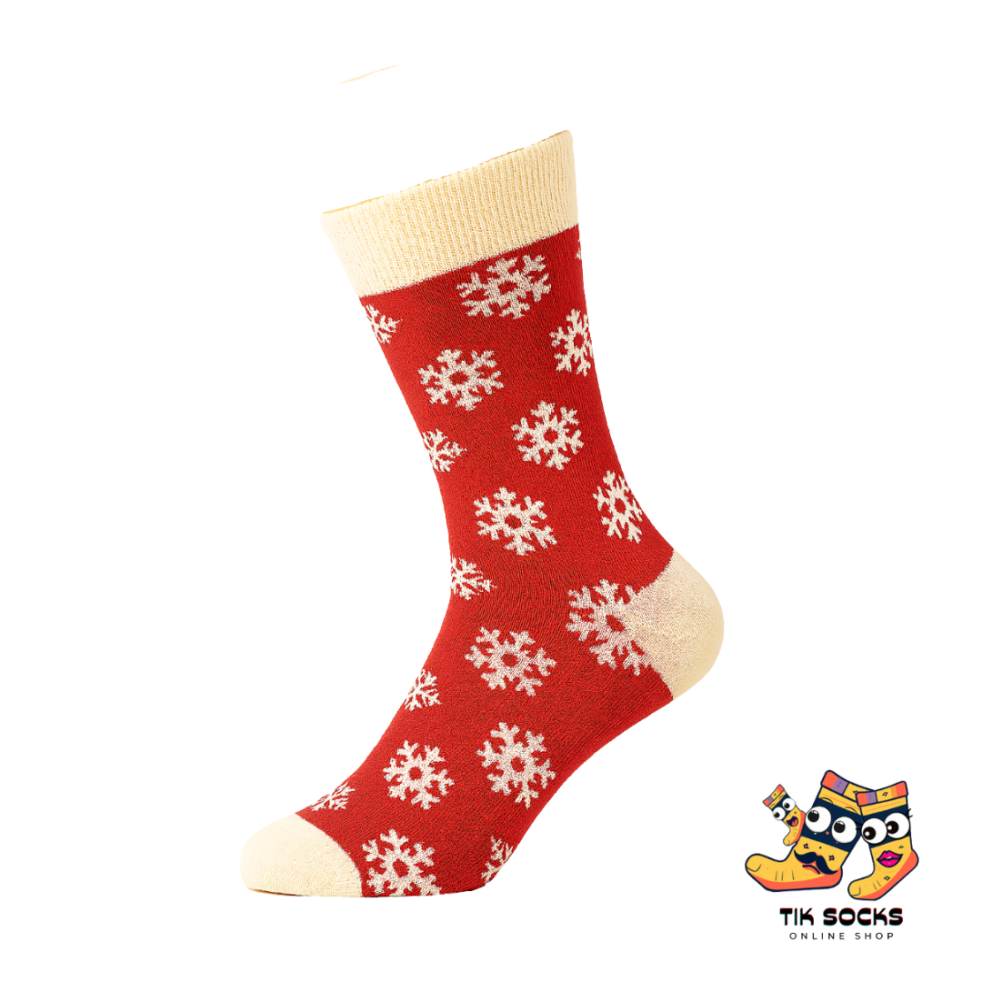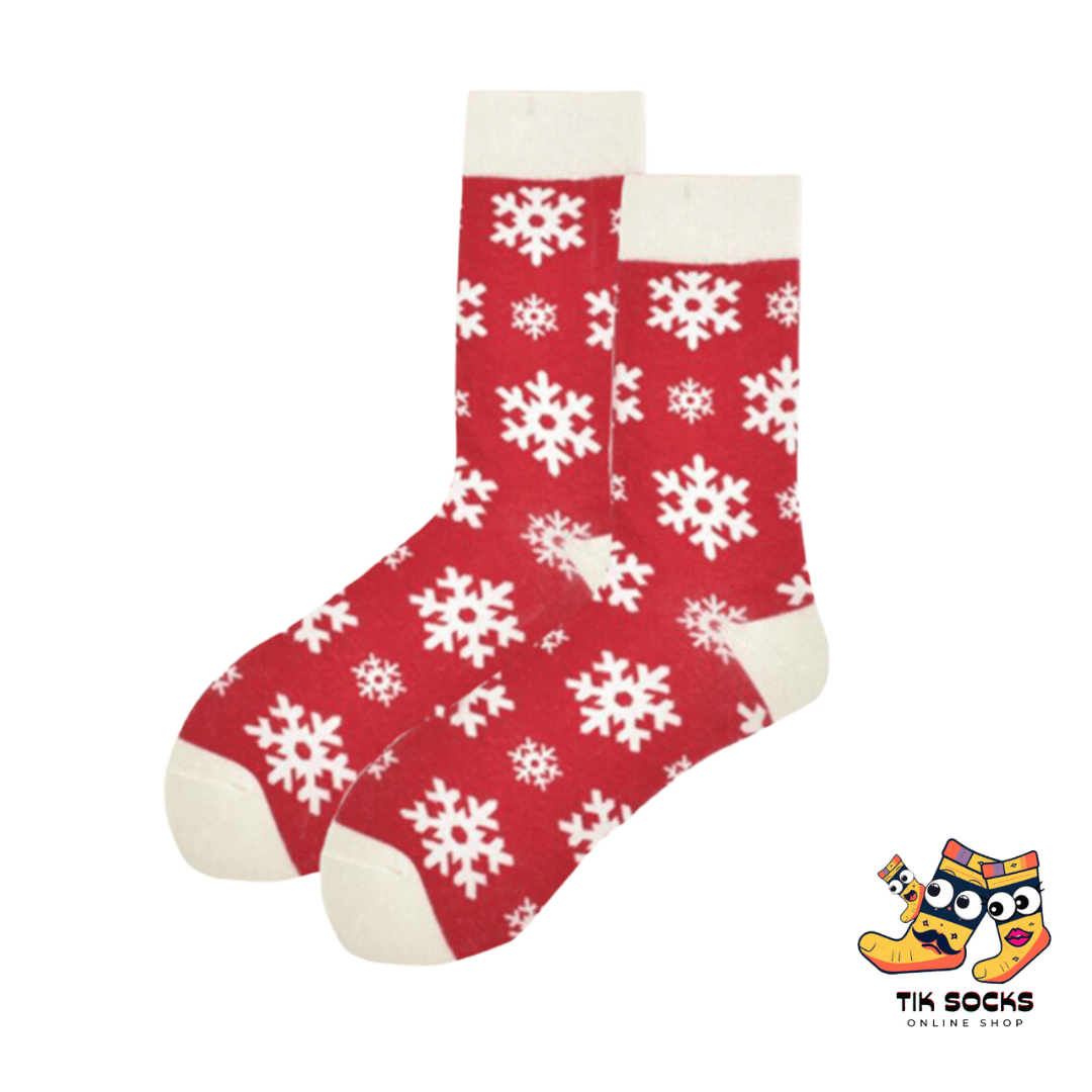❄️ Enchanting Snowflake Design: Adorned with crisp white snowflakes, these rich red socks capture the exquisite beauty of a winter's day, bringing the charm of the season's first snowfall to your wardrobe.
