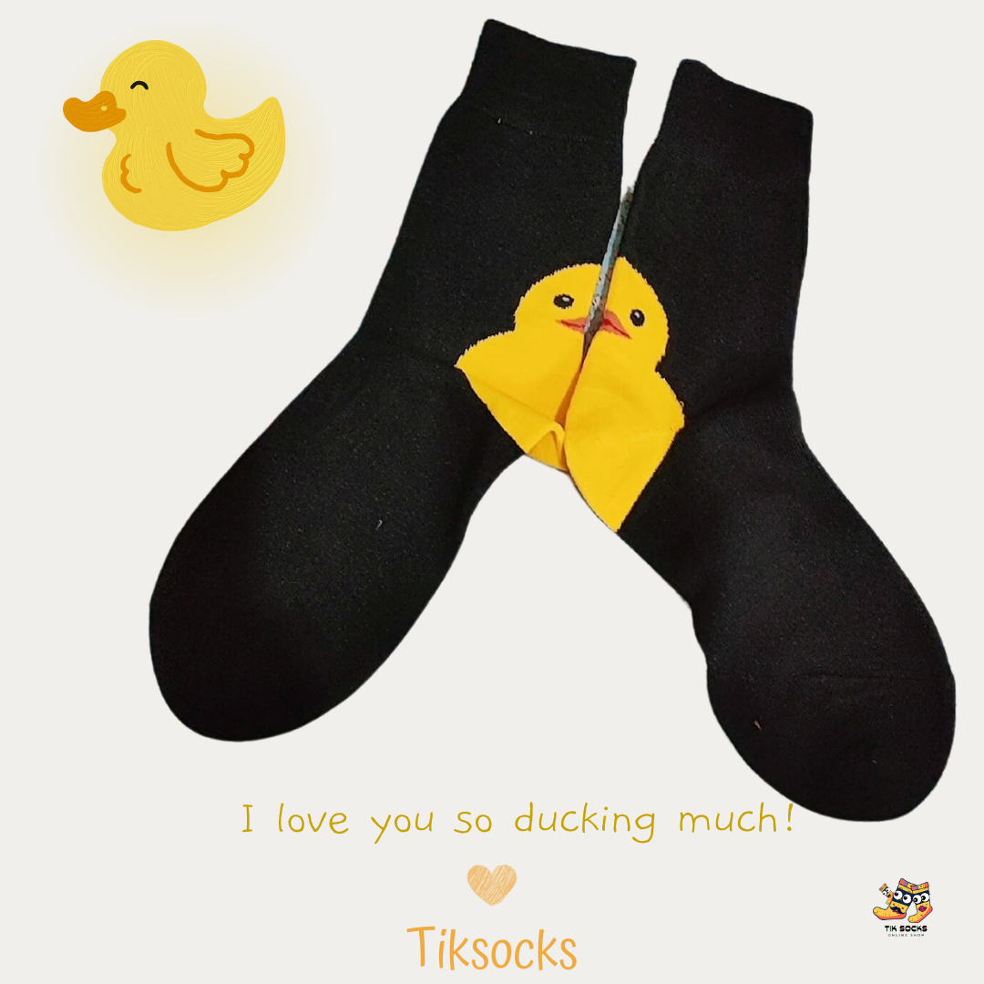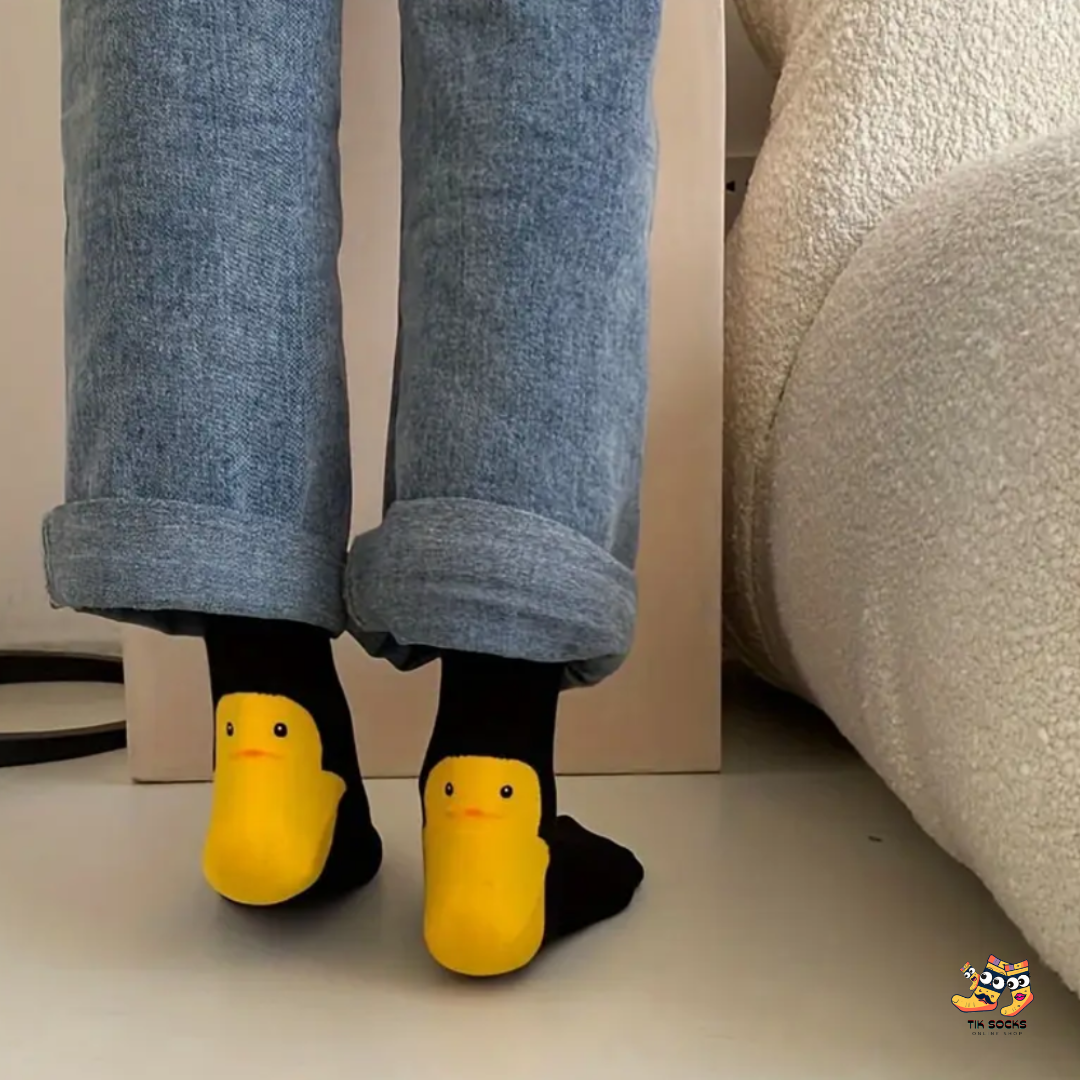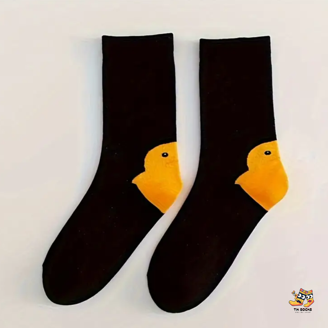 Chic Quack: Black Socks with Cute Yellow Duck on Heel