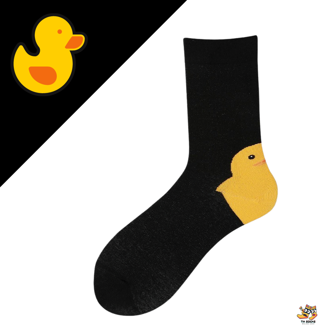 Step into a world of subtle whimsy with our Chic Quack Black Socks, featuring an adorable yellow duck design on the heel. These socks blend classic elegance with a dash of playfulness, perfect for those who love to add a hidden surprise to their outfit.