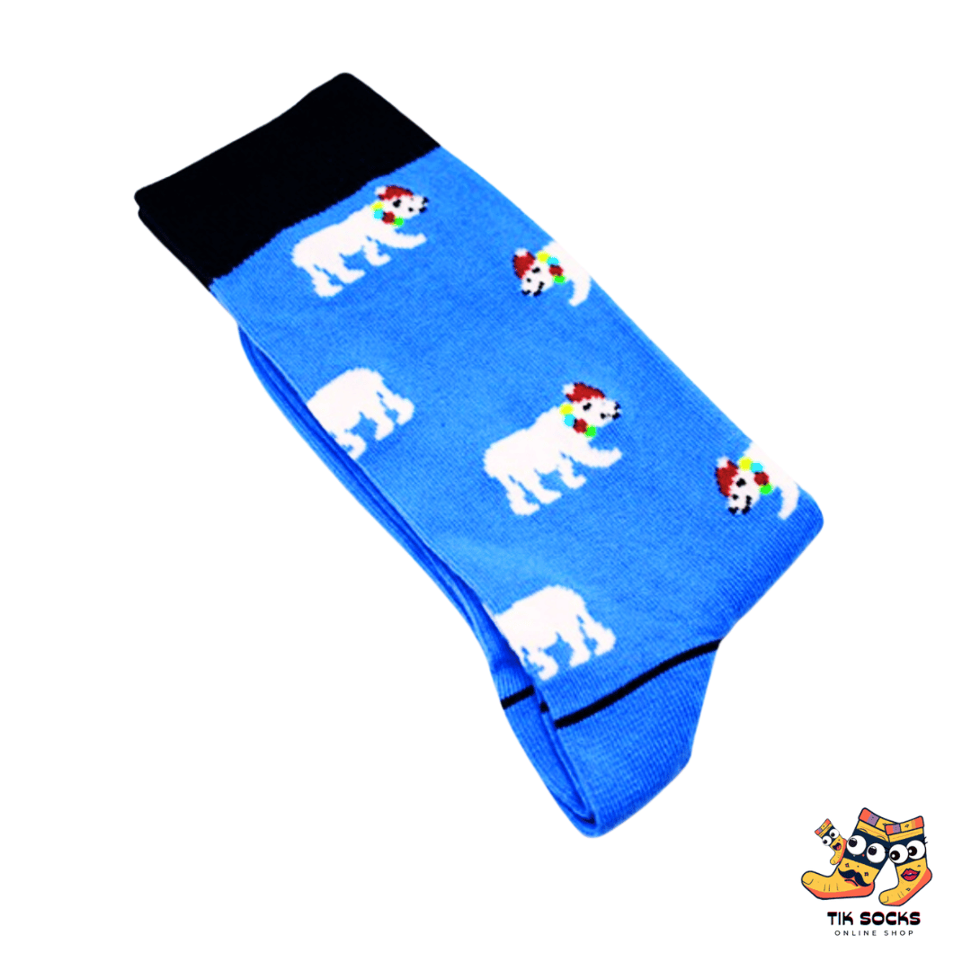 🐻❄️ Adorable Polar Bear Design: Decorated with endearing polar bears sporting colorful party hats, these socks capture the playful spirit of the Arctic's most beloved animal. The cheerful bears against the bright blue background evoke the joyous atmosphere of the polar region.