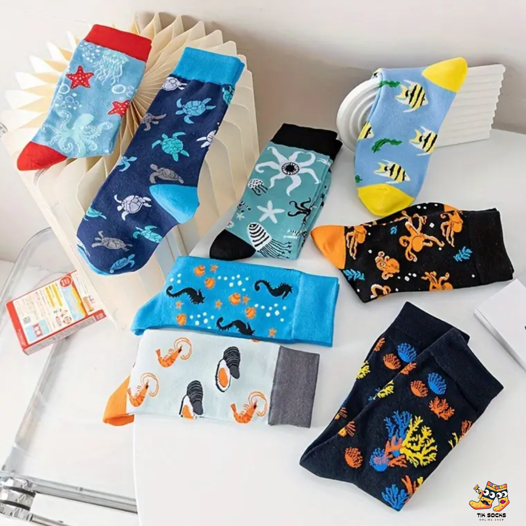 TikSocks|Fun Socks-Octopus and Starfish blue socks