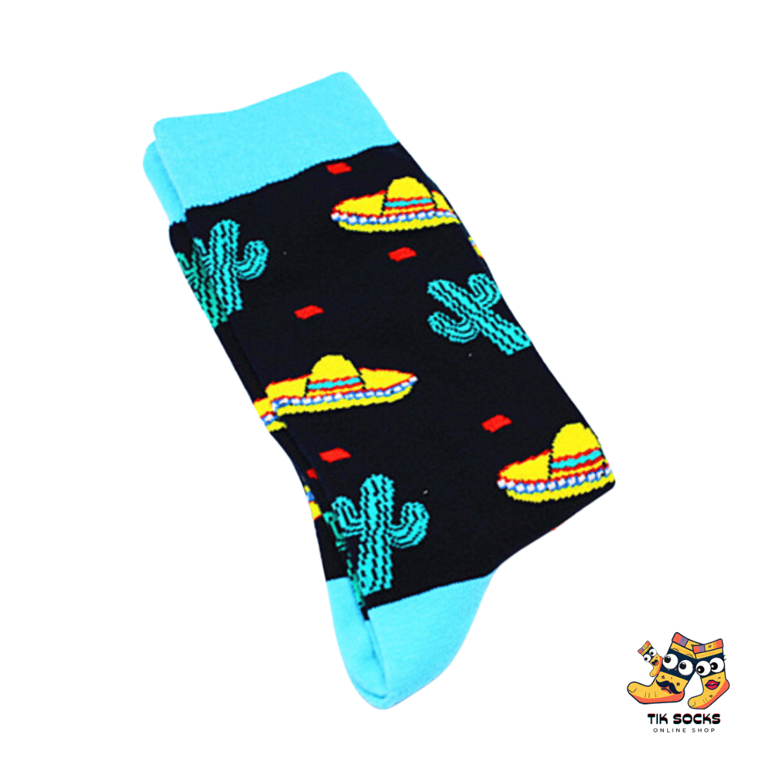 👽 UFO and Cactus Pattern: Featuring vibrant sombrero-wearing UFOs amidst classic desert cacti, these socks are a playful nod to extraterrestrial mysteries and the spirit of the Southwest.