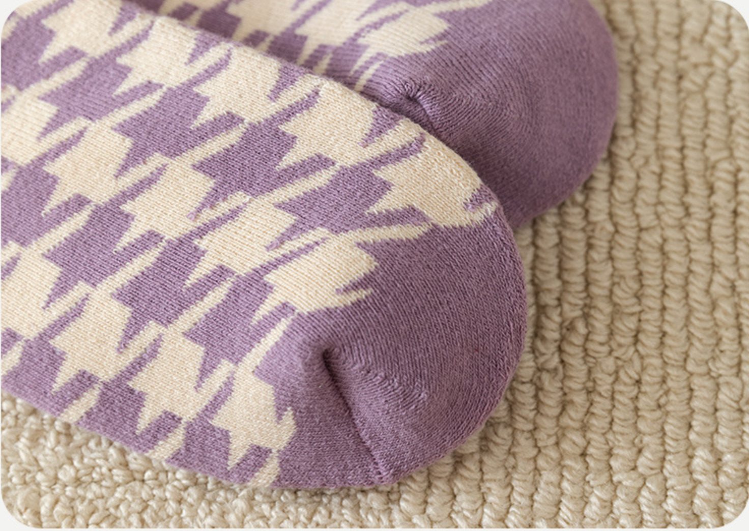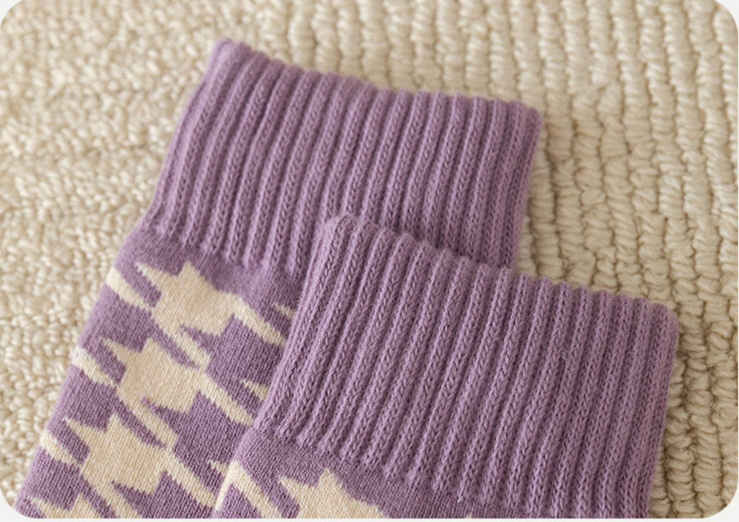 These velvet-thickened socks offer extra warmth for sleep and maternity wear. Their stylish college vibe makes them a chic addition to any winter wardrobe.Made with a premium blend of 75% cotton for breathability, 22% polyester for durability, and 3% spandex for just the right stretch. These stylish socks provide luxurious comfort and warmth all winter long